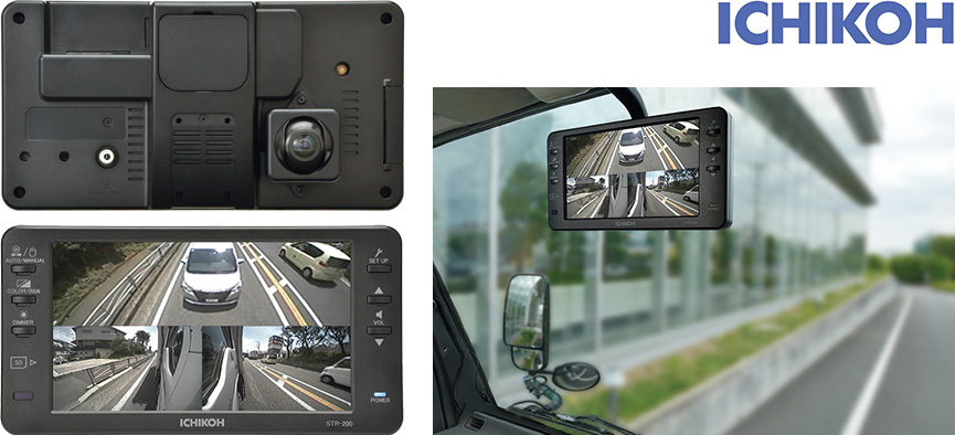 バックカメラモニターに前方カメラ(100万画素)が一体化したドライブレコーダー。<市光工業製>
